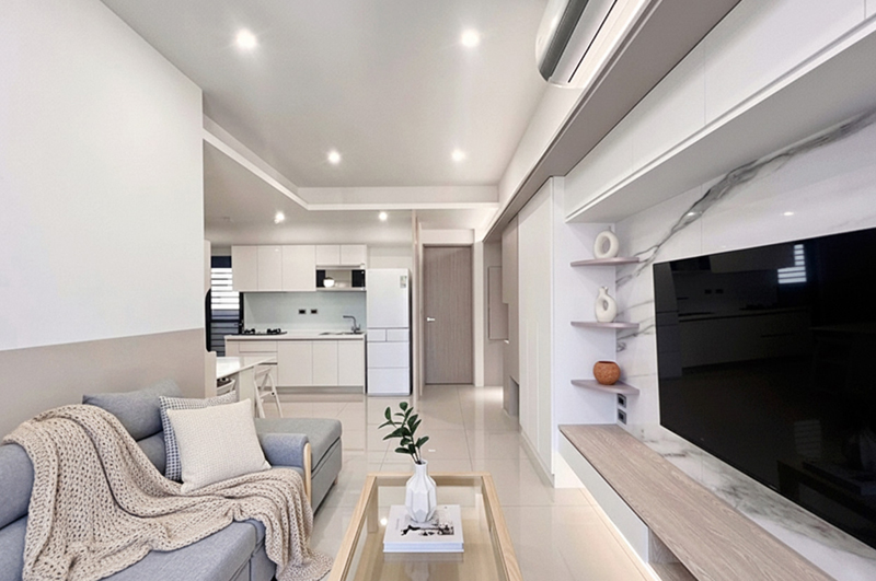◆主要建材:科技木皮板、美耐板、格柵板、鋁框門、跳色刷漆